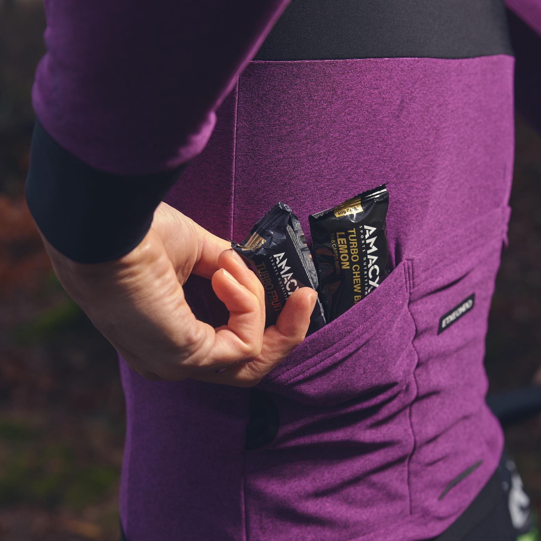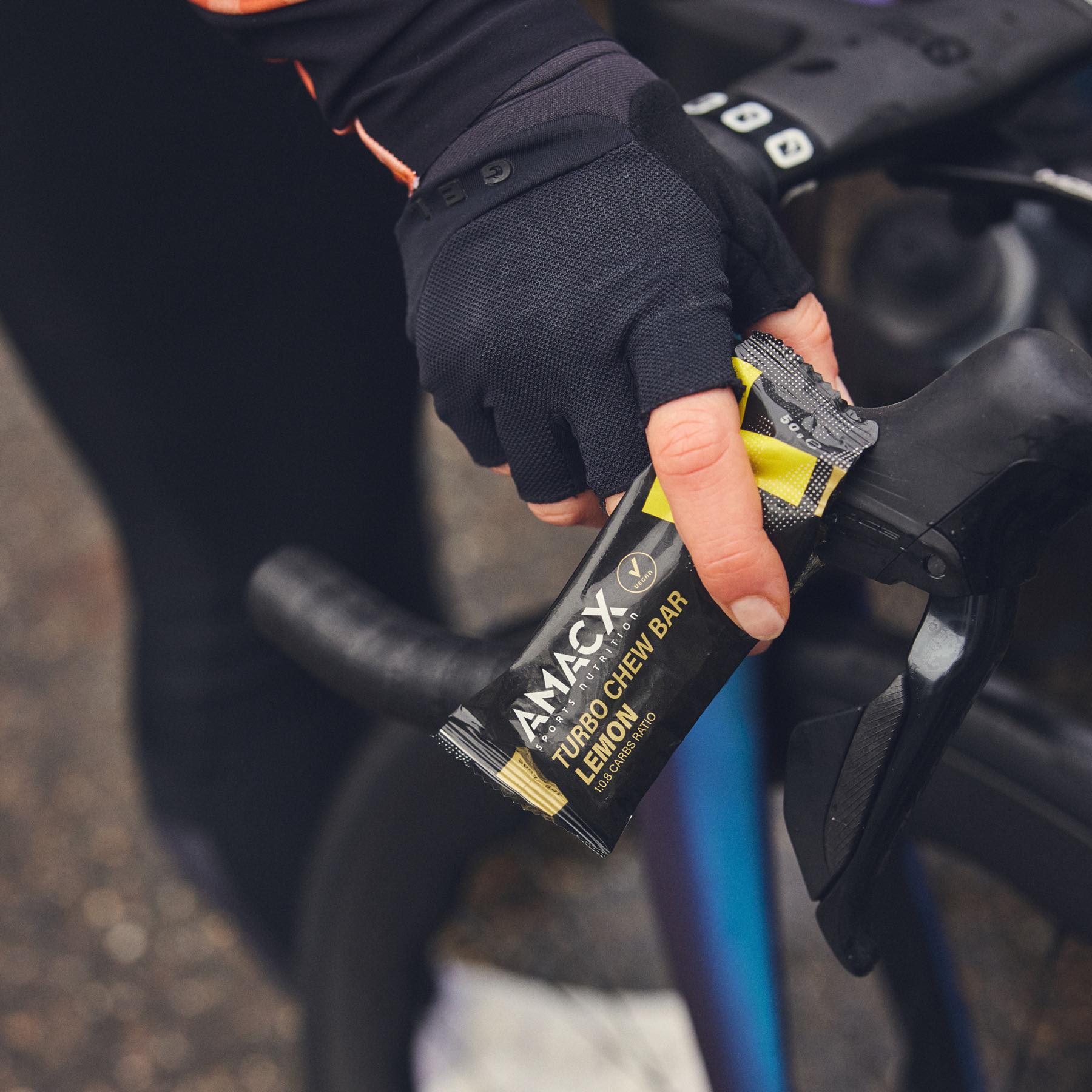 Because it is low in fat, protein, and fiber, it is easier to digest than heavier bars and works well at race intensity. The soft bite makes it easy to eat on the move, and it combines perfectly with other products from the Amacx Turbo Line.