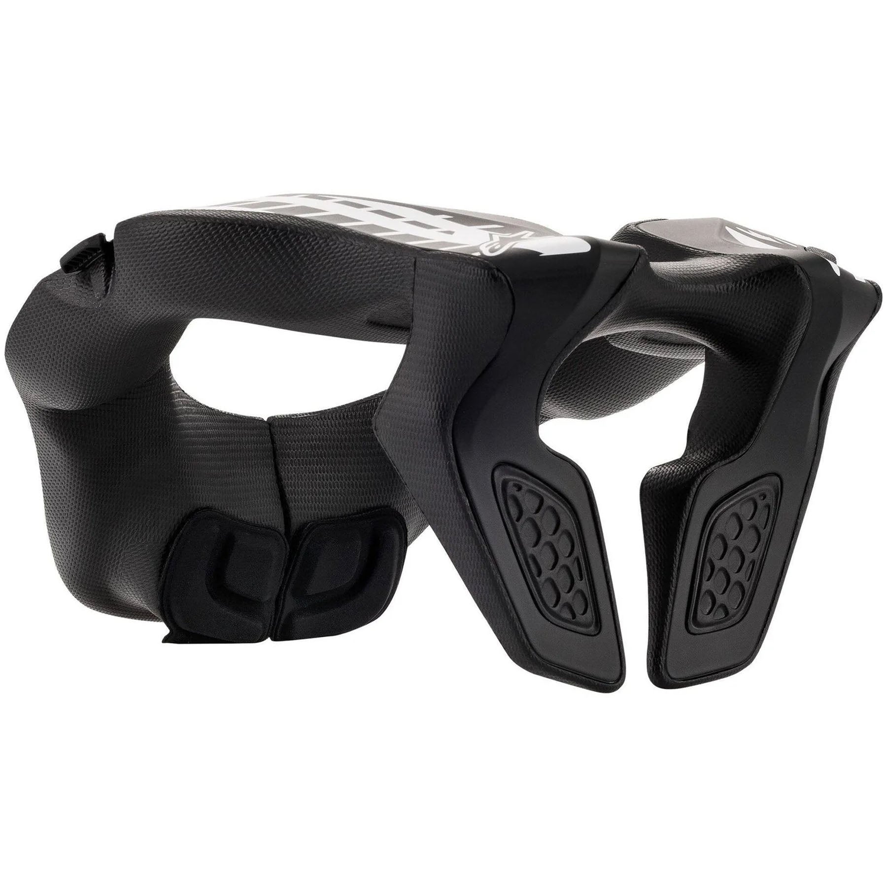 The Youth Neck Support integrates seamlessly with Alpinestars Youth chest protectors using the supplied Velcro/elastic straps, offering complete protection for young riders.